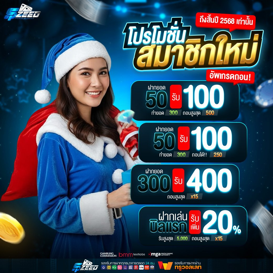 เริ่มต้นด้วยโปรโมชั่นเครดิตฟรีที่ spzeed มอบให้สมาชิกใหม่ทุกคน เพียงแค่สมัครสมาชิกและทำการยืนยันตัวตน คุณก็จะได้รับเครดิตฟรีไปเลย ซึ่งสามารถนำไปใช้เดิมพันได้ทันทีในเกมที่คุณชื่นชอบ นอกจากนี้ยังมีโบนัสแรกเข้าสุดพิเศษ 100% สำหรับการฝากเงินครั้งแรก เช่น ถ้าคุณฝาก 1,000 บาท จะได้รับโบนัสเพิ่มอีก 1,000 บาท รวมเป็น 2,000 บาทเลยทีเดียว